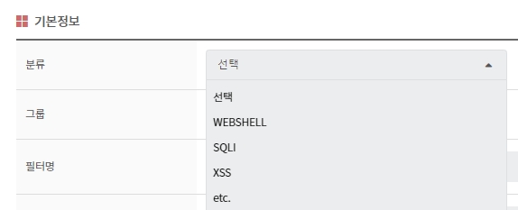 아래는 웹 방화벽 필터 등록 예시입니다.