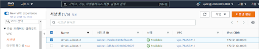 여러 가용 영역에서 인스턴스가 생성될 경우, 각 영역에 서브넷을 생성합니다.
