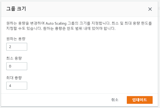 Auto Scaling 그룹의 그룹 세부 정보에서 그룹 크기를 수동으로 조정합니다.