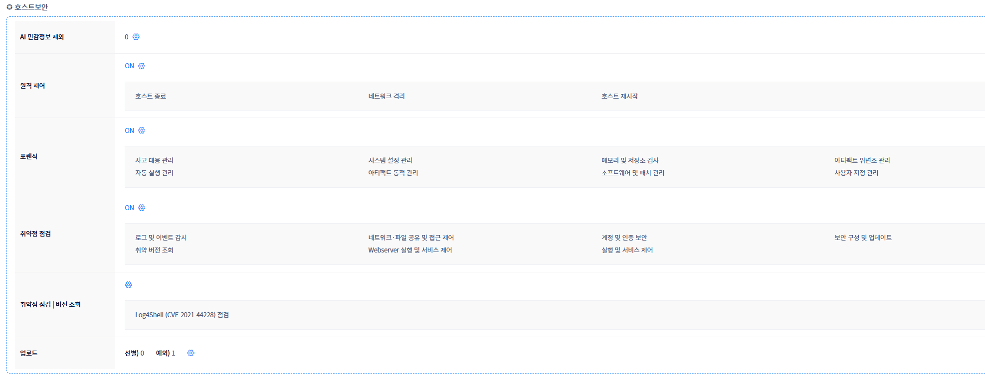 * 호스트 보안 영역에서 취약점 점검 기능을 ON/OFF 설정하는 항목입니다.