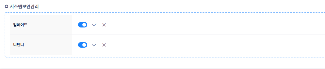 * 해당 기능을 ON으로 설정하면 시스템 보안 관리 메뉴에서 업데이트 및 보안 항목을 통합 관리할 수 있습니다.